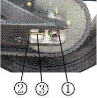 (4) Отрегулируйте болт вращением влево или вправо ③, чтобы отрегулировать степень ослабления цепи. При регулировки цепи необходимо сделать так, чтобы передние и задние колесики цепи поддерживались на прямолинейной линии к центру. Чтобы оказать поддержку регулировочному процессу, на качающемся плече и каждом регуляторе цепи есть стандартные отметки. Они могут взаимно выверяться, а также осуществлять сравнение от одного конца до другого. После выверения и регулировки цепи до степени ослабления 10-20 мм, нужно снова закрепить гайку задней оси и осуществить последнюю проверку.