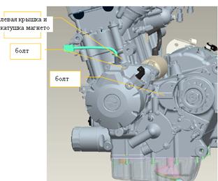 Ослабьте крепежный болт с левой крышки, снимите левую крышку и катушку магнето.