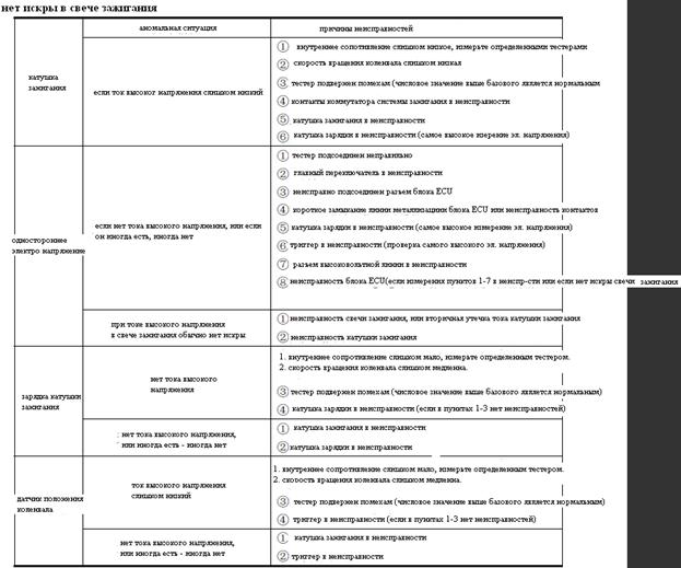 1. Просьба последовательно выполнять проверку системы зажигания на основании показаний диагностики неисправностей.