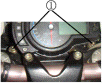 Снимите 2 болта крепления ① передней блок фары слева и справа от измерительного прибора