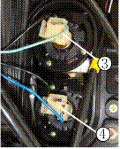 На рисунке показаны лампы ближнего света ③, лампы дальнего света ④. По отдельности снимите розетку провода питания ближнего или дальнего света, которые требуется заменить. Снимите болт крепления цоколя электронной лампочки, цоколь электронной лампочки, и в самом конце снимите поврежденную электронную лампочку. При замене электронной лампочки используйте электронную лампочку стандартной модели.