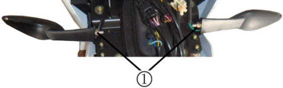 (1) Снимите болт крепления ① фонаря поворотника с левой или правой стороны задней части кронштейна номерного знака.