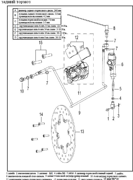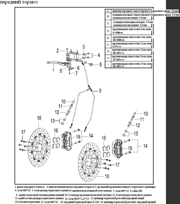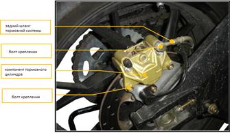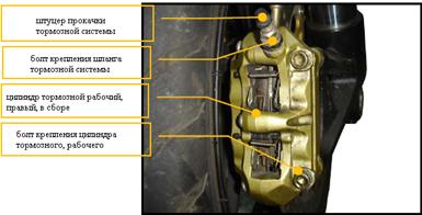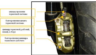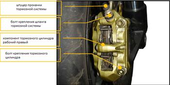 Установите шланг тормозной системы переднего тормоза, компоненты тормозного цилиндра.