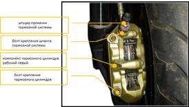 Установочный болт левого переднего тормозного цилиндра 37-55N·m