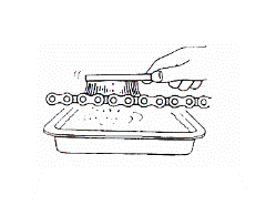 Снимите цепное колесико, позвольте раскрыться цепи и цепному колесу.