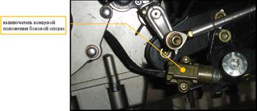 Отключите соединительное звено выключателя концевого положения боковой опоры, снимите выключатель концевой положения боковой опоры.