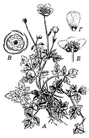 Малюнак 71 – Казялец паўзучы (Ranunculus repens): А – квітучая расліна;