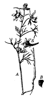 Малюнак 73 – Рагулькі палявыя (Consolida regalis): А – квітучая расліна;