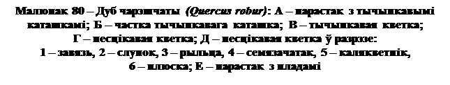 У Рэспубліцы Беларусь расце дуб чарэшчаты (Q. robur, малюнак 80 ). Гэта характэрная лесаўтваральная парода зоны шыракалісцёвых лясоў. Дуб – дрэва першай велічыні (да 35 м) з перыста-лопасцевымі лістамі. Цвіце ў час распускання лістоў, з пазух якіх вырастаюць рэдкакветкавыя каташкі.