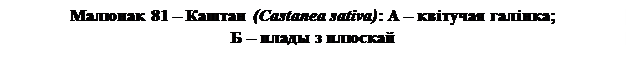 . Пры паспяванні пладоў плюска расшчапляецца на 2-4 створкі з вострымі вырастамі. Размяшчэнне створак адпавядае размяшчэнню прыкветнікаў дыхазія бакавых кветак. Плюска каштана мае ліставую прыроду.
