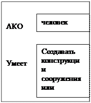Важным свойством фреймов является наследование свойств, заимствованных из теории семантических сетей. Наследование происходит по АКО – связям (A-Kind-Of= это). Слот АКО указывает на фрейм более высокого уровня иерархии, откуда неявно наследуется, т.е. переносятся значения аналогичных слотов. Например, в сети фреймов на рис. 4.4.2. «конструктор» наследует свойства фреймов «инженер» и «человек», которые стоят на более высоком уровне иерархии. Модель фреймов достаточно универсальна, позволяет отобразить все многообразие знаний о мире через: