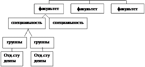 - несколько узлов низшего уровня связано только с одним узлом высшего уровня;