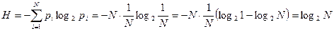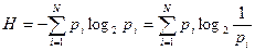 Энтропия системы (мера неопределенности) H, имеющая N возможных состояний, согласно формуле Шеннона, равна:
