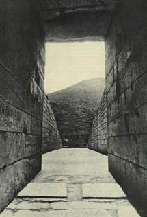 Рис. 1.34. «Гробница Агамемнона» в Микенах: a – главный вход; б – дромос (коридор)