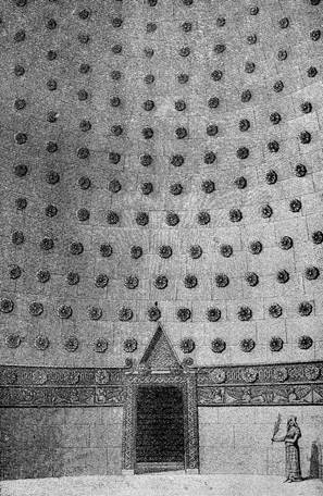 Постепенно уменьшение высоты каменных блоков от основания купола к вершине визуально увеличивало габариты купола, придавали интерьеру особую «воздушность». Гробница производит впечатление гораздо большей, чем она является по своим абсолютным размерам. Гробница казалась больше своих истинных размеров (рис. 1.36-а). В швы между камнями были вставлены бронзовые розетки (рис. 1.36-б). Синий купол напоминал ночной небосвод, а розетки – звезды.