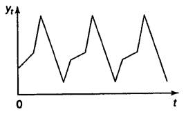 Также изучаемый показатель может быть подвержен циклическим колебаниям. Эти колебания могут носить сезонный характер, поскольку экономическая деятельность ряда отраслей экономики зависит от времени года (например, цены на сельскохозяйственную продукцию в летний период выше, чем в зимний; уровень безработицы в курортных городах в зимний период выше по сравнению с летним). При наличии больших массивов данных за длительные промежутки времени можно выявить циклические колебания, связанные с общей динамикой конъюнктуры рынка. На рис. 4.2 представлен гипотетический временной ряд, содержащий только сезонную компоненту.