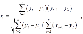 Эту величину называют коэффициентом автокорреляции уровней ряда первого порядка, так как он измеряет зависимость между соседними уровнями ряда