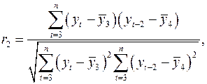 Аналогично можно определить коэффициенты автокорреляции второго и более высоких порядков. Так, коэффициент автокорреляции второго порядка характеризует тесноту связи между уровнями