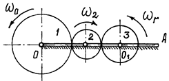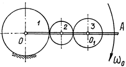 Колесо 3 участвует в двух движениях. Вращаться вместе с водилом вокруг оси О и относительно оси