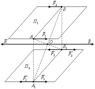 Пару сил, не изменяя ее деяствия, можно перенести из одной плоскости в другую, паралелльную ей. (рис. 12).