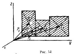 Некоторые тела сложной формы можно разбить на части, центры тяжести которых известны или предварительно могут быть определены. В таких случаях центры тяжести сложных тел вычисляются по общим формулам, определяющим центр тяжести, только вместо элементарных частиц тела берутся его конечные части, на которые оно разбито. Покажем это на частном примере плоской фигуры (рис. 34). Плоскую фигуру можно разбить на три части, центры тяжести которых С1, С2, С3 известны. Они находятся на пересечении диагоналей прямоугольников. Их радиусы – векторы обозначим
