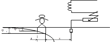 Напряжение шага — это разность потенциалов j1 и j2 в поле растекания тока по пов-ти земли между точками, расположенными на расстоянии шага (» 0,8 м).