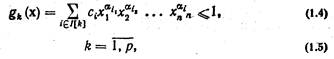 4. Геометрическое программирование, если целевая функция f (х) ограничения gκ. (х) представляют собой так называемые функции-позиномы