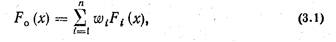 Если все критерии измеряются в одной шкале, то обобщенный критерий F0 (x) можно записать в виде взвешенной суммы этих критериев