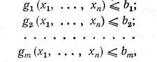где f (x1,..., хп) — целевая функция или эффективность системы (например, доход от производства каких-то изделий, стоимость перевозок и пр.); x = х1ъ...,хп — варьируемые параметры; g1 (x),... gm (x) — функции, которые задают ограничения на имеющиеся ресурсы.