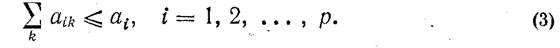 Определение оптимального ассортимента. Имеется р видов ресурсов в количествах а1 a2,..., aі,..., ар и q видов изделий. Задана матрица А = || aіk ||, где aіk характеризует нормы расхода і -го ресурса на единицу k- гoизделия (k = 1, 2,..., q).