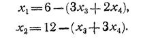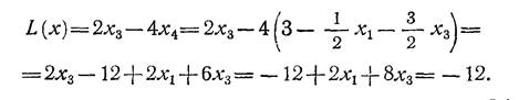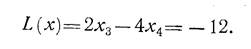 Вспомогательные переменные х1 и x3 входят в L(x) с положительными коэф-фициентами. Поэтому наименьшие возможные значения для них: х1 = 0; хъ = 0. В базисе х2 и х 4 линейная форма достигает своего минимума: