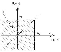 . На рисунке показана область T для двумерного пространства, которая в данном случае имеет вид прямоугольного клина с вершиной, лежащей на прямой, проведенной из начала координат под углом