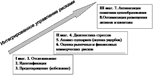 Управление рисками базируется на интегрированном подходе. Не рекомендуется изучать изолированно какую-то отдельную грань риска, так как все признаки рисков взаимосвязаны между собой и подвергаются взаимному влиянию на объект управления. Соответственно минимизация последствий наступления риска должна осуществляться комплексными мерами (рис. 1.11).