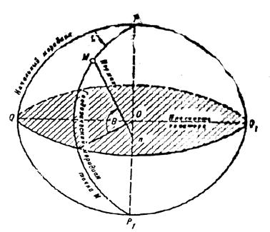 Астрономической широтой φ точки М (рисунок 6) называется угол между направлением отвесной линии Mm в данной точке и плоскостью земного экватора; этот угол равен углу, образуемому осью вращения Земли с плоскостью горизонта данной точки.
