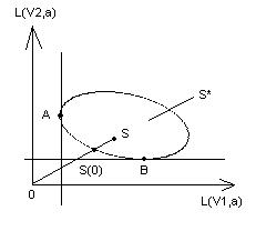 S*, проведём отрезок из начальных координат в эту точку. Очевидно, что все точки, расположенные на этом луче и множество S* будут давать потери, меньшие, чем потери S*. Наименьшие потери будут а точке S