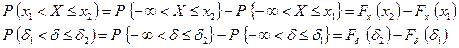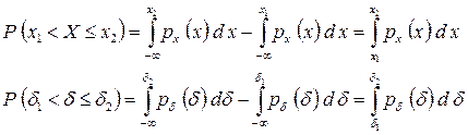 Используя понятия функций распределения, легко получить выражения для вероятностей того, что результат наблюдений Х или случайная погрешность δ примет при проведении измерения некоторое значение в интервале [x1, x2] или [δ 1, δ 2].