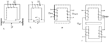 Принцип действия этих датчиков основан на взаимодействии магнитных потоков. О величине перемещения или деформации судят по изменению тока в катушке индуктора. Различные схемы электромагнитных датчиков приведены на рисунке.