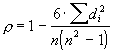 Коэффициент Спирмана (ранговый коэффициент) Рассчитывается по следующей формуле: