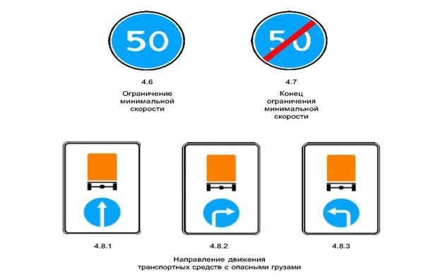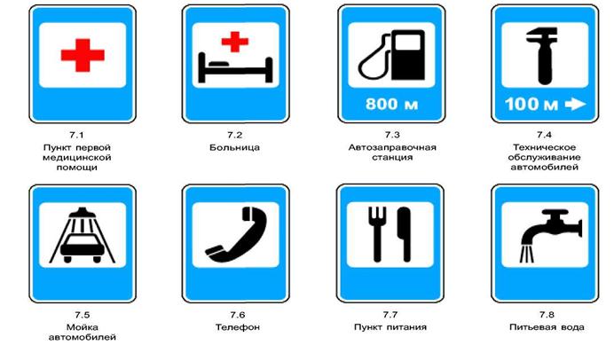Помимо формы и размера важную роль для надежного восприятия знаков играет их цвет. За некоторыми исключениями предупреждающие и запрещающие знаки имеют белый фон, а предписывающие, знаки особых предписаний, указательные знаки и знаки сервиса имеют синий цвет.
