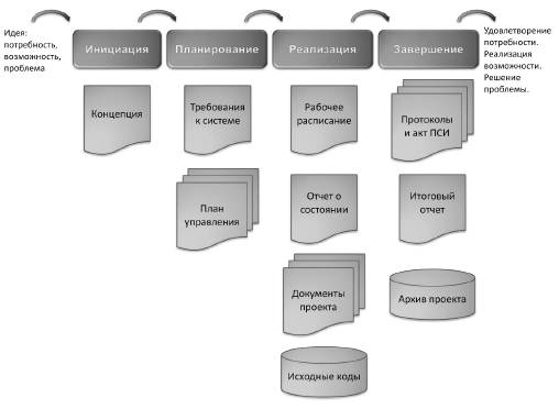 Рисунок 12. Жизненный цикл и основные продукты программного проекта