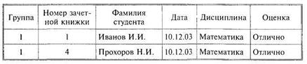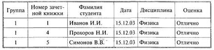ЭКЗАМЕНАЦИОННАЯ ВЕДОМОСТЬ (Группа, Номер зачетной книжки, Фамилия студента, Дата, Дисциплина, Оценка)