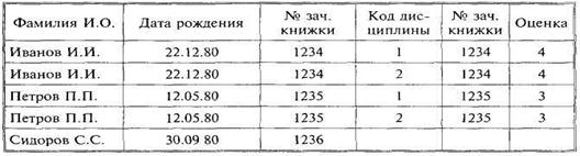 Пересечение последних даст нам искомое отношение — «СПИСОК ОТЛИЧНИКОВ», содержащее номера зачетных книжек и фамилии, общие для всех списков отличников.