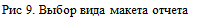 В следующем окне мастер отчетов предлагает указать, как представляются данные в отчете. В распоряжении пользователя имеются следующие варианты отображения данных (рис.9)