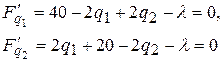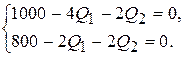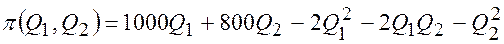 Требуется найти такие значения Q1 и Q2, при которых прибыль, получаемая фирмой, максимальна.