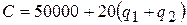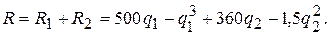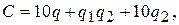 Пример 3. Фирма-монополист производит два вида товаров G1 и G2 в количестве q1 и q2 соответственно. Функция затрат имеет вид: