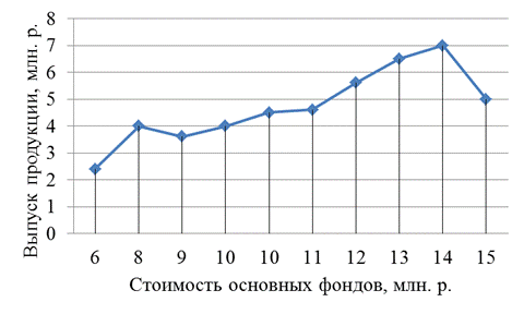Изобразим на графике координаты факторного и результативного признака точками, а затем соединим их между собой (рисунок 8.3).