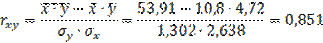 Таблица 8.5 - Расчет линейного коэффициента корреляции