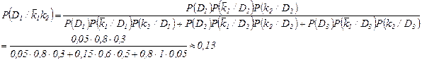 Вычислим вероятности состояний в том случае, когда оба признака отсутствуют. Аналогично предыдущим выкладкам получим