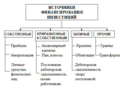 Представляется познавательной и классификации инвестиций по источникам их финансирования; хотя в большей мере это, возможно, классификация самих источников: