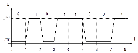 Рис. 1.1. Представление цифровой информации сигналами потенциального типа (последовательный код).